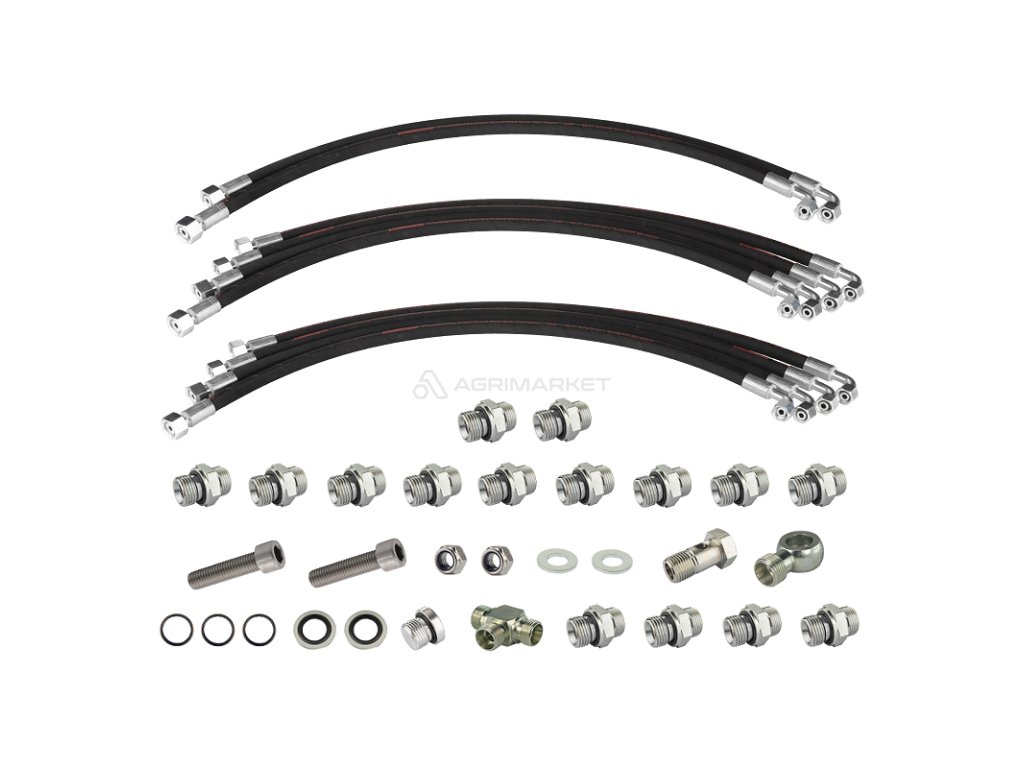 | Hydraulické hadice a upevňovací prvky: | Sada obsahuje všechny potřebné hydraulické hadice a konektory potřebné pro připojení a správnou funkci nových rozvaděčů, zadního táhla a zadních objímek. |