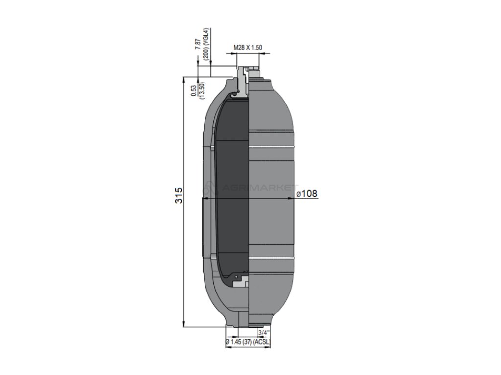 Hydroakumulátor ACSL 1,5 kapacita hydropneumatického akumulátoru: 1,5L maximální tlak: 250bar