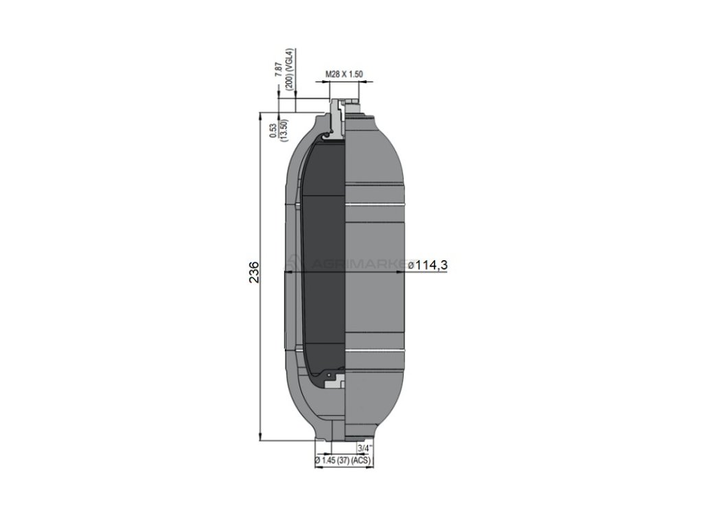 Hydroakumulátor hydropneumatický akumulátor ACS 1 kapacita: 1L maximální tlak: 330bar