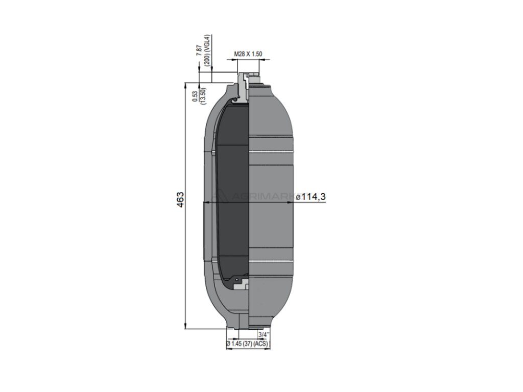 Hydroakumulátor hydropneumatický akumulátor ACS 2,5 kapacita: 2,5L maximální tlak: 330bar