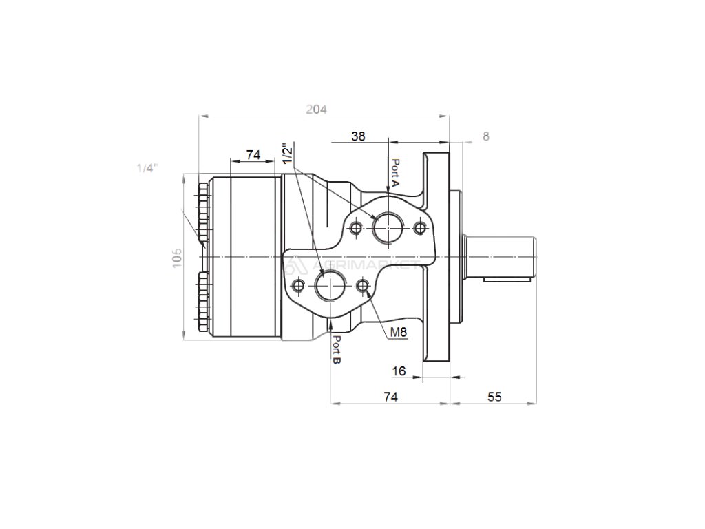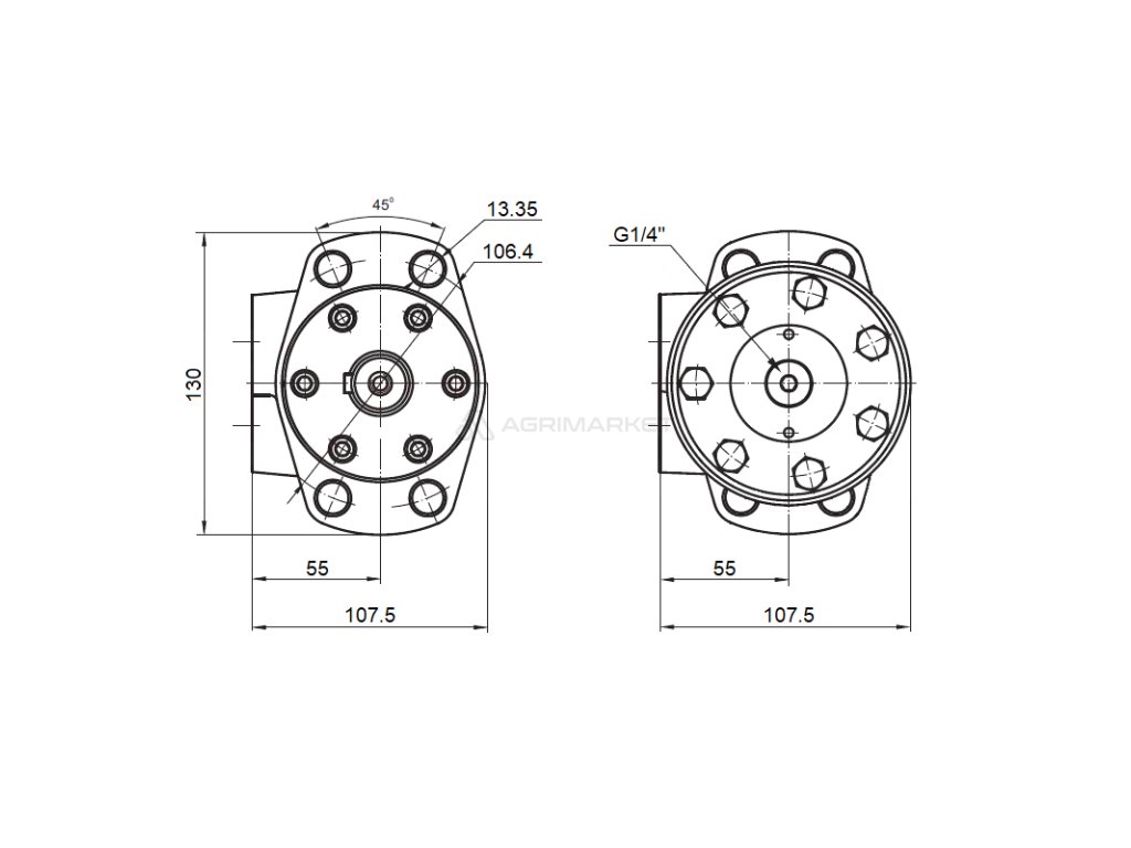 HYDROMOTOR GEROLLER TYPU BMR 400 DODÁVÁNO S PŘÍRUBOU SE ČTYŘMI ŠROUBY NASÁKAVOST: 400cc/ot ; VÁLEČEK: 32mm ; OBRAT: 150ot./min | |