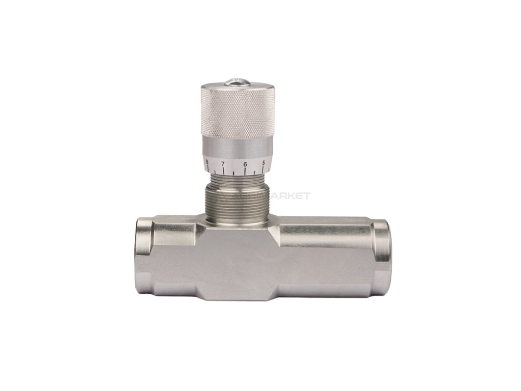 | Obecné informace: | Škrtící ventil reguluje (škrtí) průtok v jednom směru, zatímco v druhém směru je průtok volný. Regulace průtoku závisí na tlaku oleje a jeho typu, provádí se pomocí knoflíku, nastavení lze zajistit aretačním šroubem |