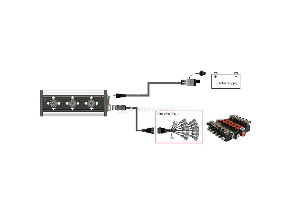 | Aplikace: | Svazek kabelů s elektrickými zástrčkami pro připojení k cívkám hydraulického rozvaděče a dalším zařízením jako jsou zvukové nebo světelné indikátory nebo jiné vypínače. Svazek spojuje mezikabel vycházející z ovládacího panelu s cívkami 6sekčního rozvaděče. Hodí se k panelu Salvarani BOX 3 3XJOY 5P v hliníkovém pouzdře se symbolem výrobce: 911610 a mezikabely CV91505 a CV91507. |