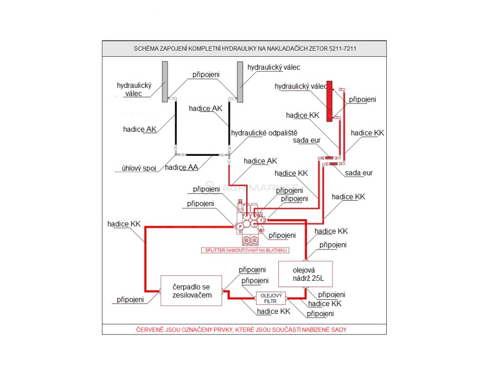 Kompletní hydraulická sada pro ovládání čelního nakladače na traktorech ZETOR 5211-7211