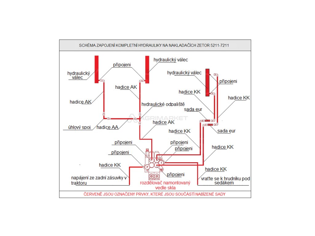 Kompletní hydraulická sada pro ovládání čelního nakladače na traktorech ZETOR 5211-7211
