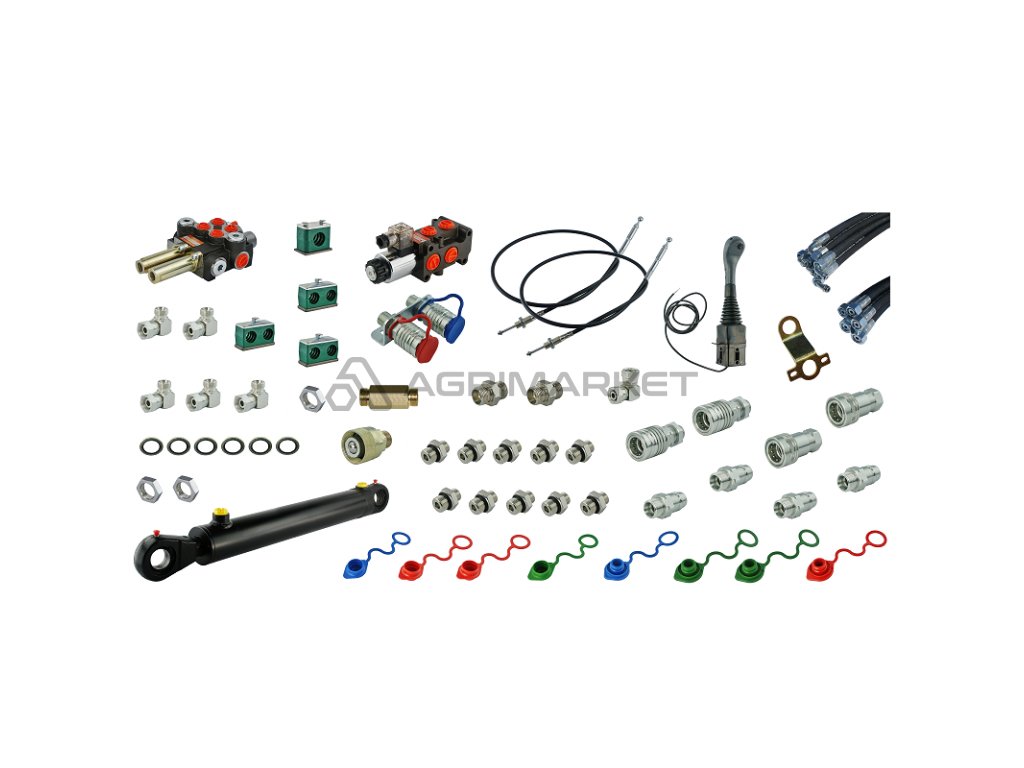 Kompletní hydraulika pro nakladač Tur C-360 C-360-3P, rozdělovač + joystick s kabely + elektromagnetický ventil + válec lopaty + kabely + komponenty