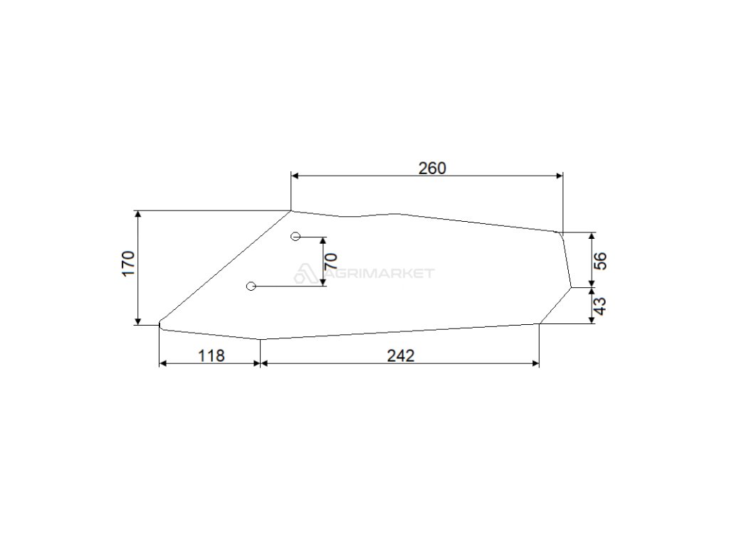 Křídelní radlice podmítače, levá, 260 mm, dva otvory