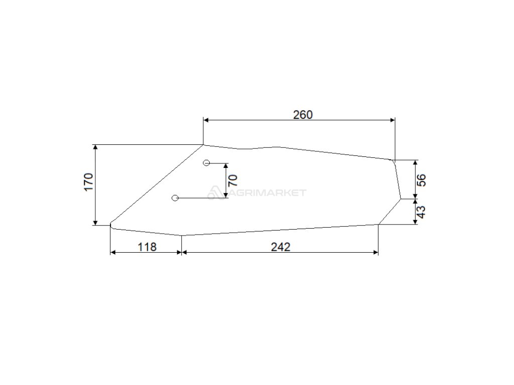 Křídelní radlice podmítače, pravá, 260mm, dva otvory