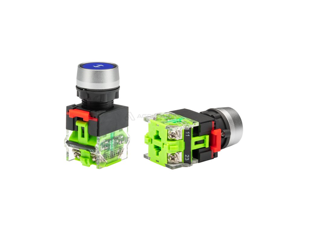 | Aplikace: | Elektrickým tlačítkem lze změnit provozní režim libovolného stroje nebo jeho části. Používá se k zapnutí nebo vypnutí jakéhokoli elektrického obvodu. Určeno pro montáž do otvoru Ø 22 mm. Instalace se provádí posunutím červené západky doleva, vyjmutím tlačítka, odšroubováním kroužku, prostrčením spínače otvorem pouzdra, zašroubováním kroužku, zatlačením tlačítka do základny a posunutím západky doprava. Po stisknutí tlačítka se spustí elektrický obvod. Pro obrácení stavu stačí uvolnit tlačítko, okruh se automaticky vypne. |