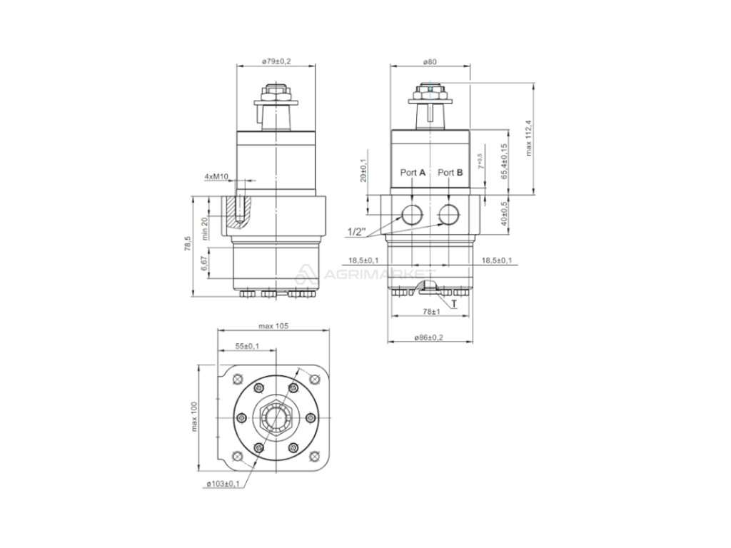 MPW hydromotor, absorpce: 50 cm3/ot, rychlost: 1210 ot/min, hřídel: 25 mm