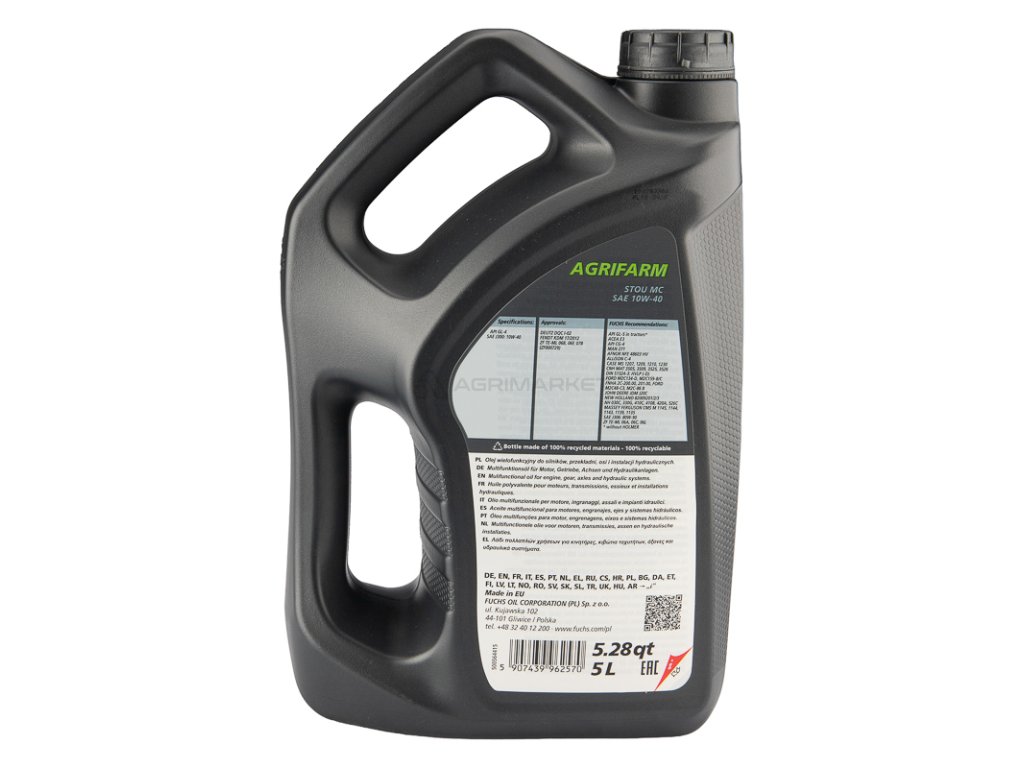 FUCHS AGRIFARM STOU MC 10W40 je vysoce kvalitní víceúčelový olej typu STOU, určený pro široké použití ve strojích a zemědělských traktorech.