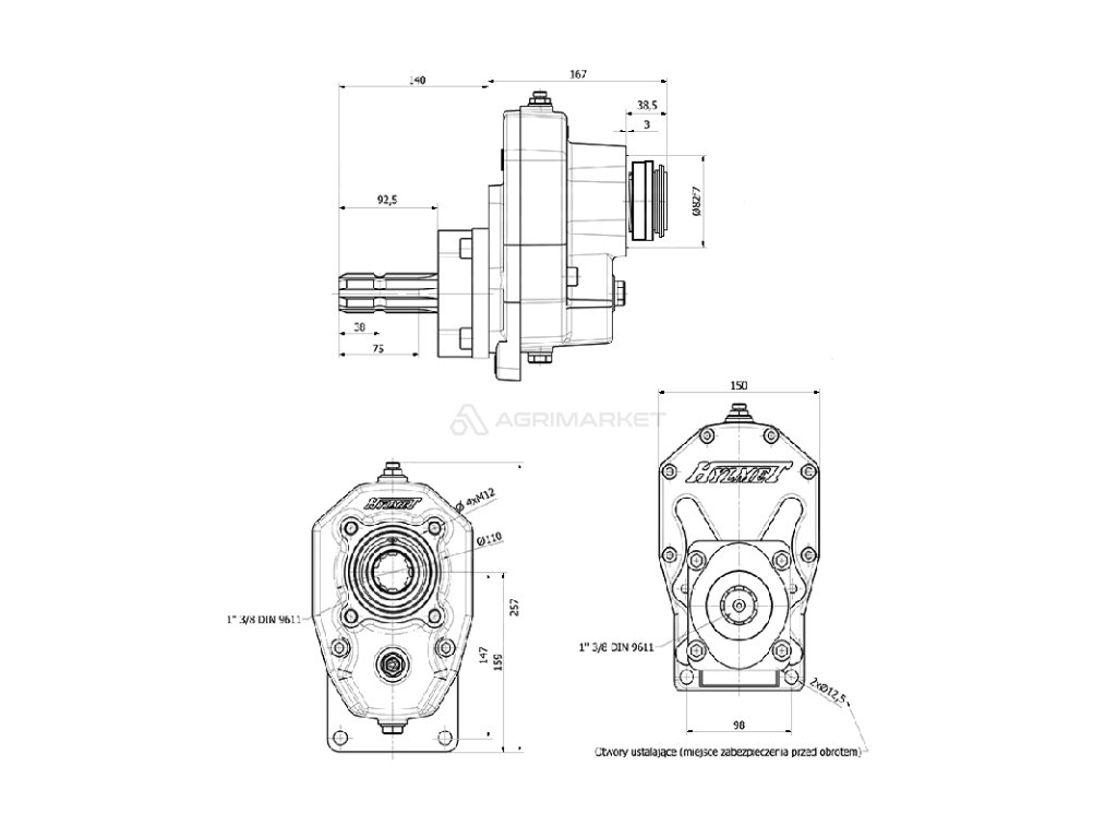 | Parametry zásuvky: | PTO 1" 3/8 DIN9611 - 6 fréz |