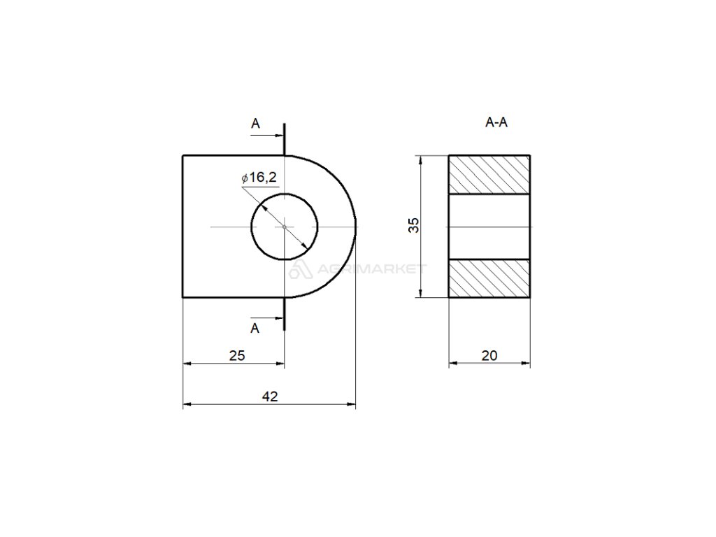 Navařitelné očko čepu s otvorem FI 16,2 mm, uchycení pro přivaření hydraulického válce 16x35x20mm