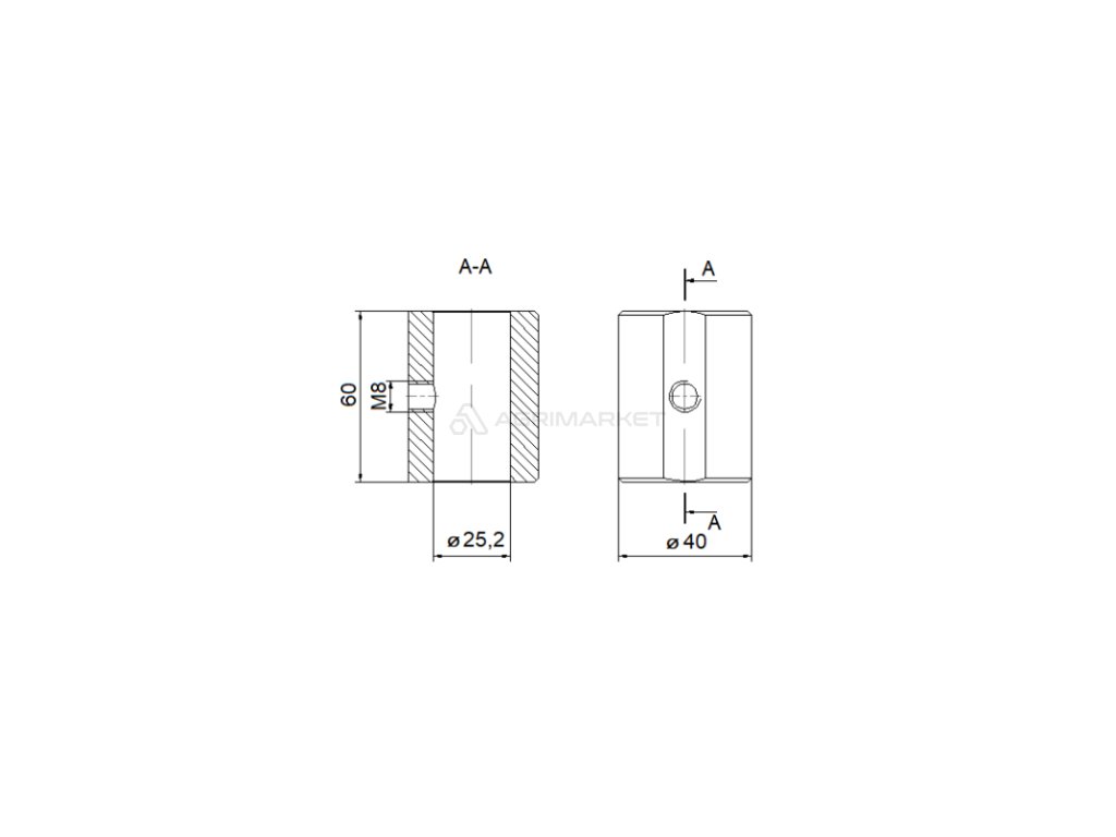Objímka pro přivaření k pístnici hydraulického válce 25x40x60