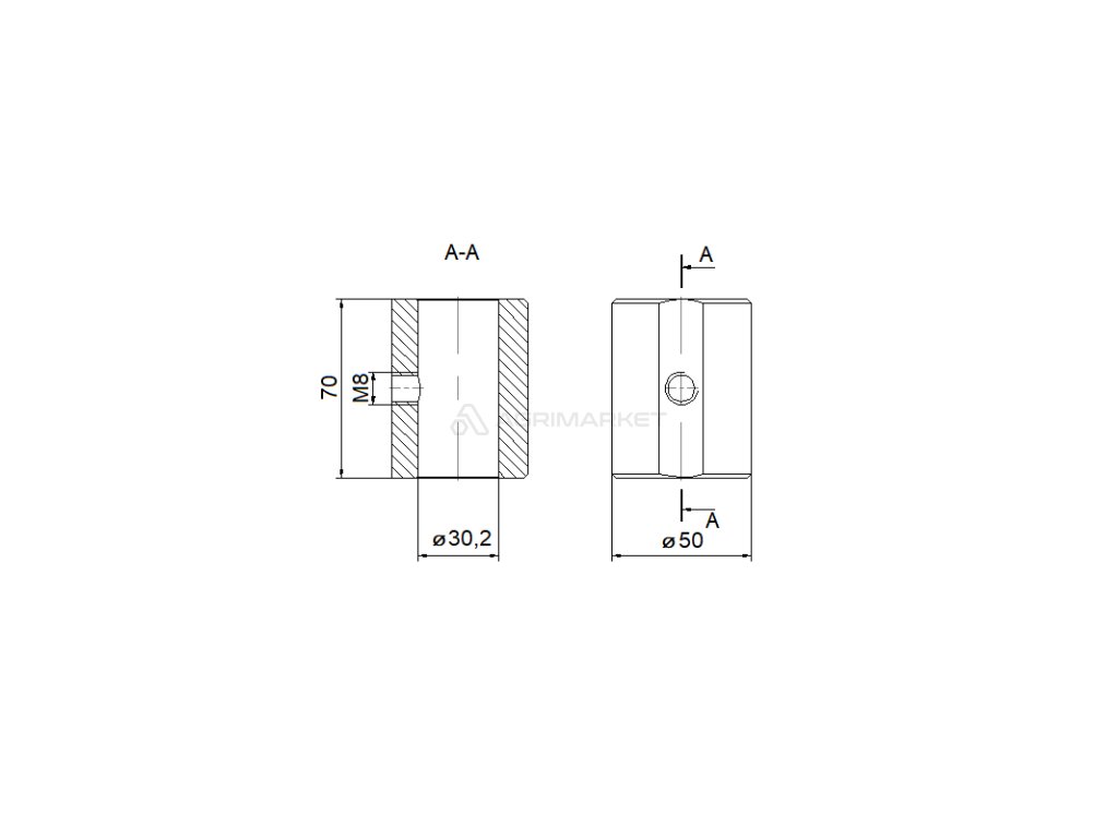 Objímka pro přivaření k pístnici hydraulického válce 30x50x70
