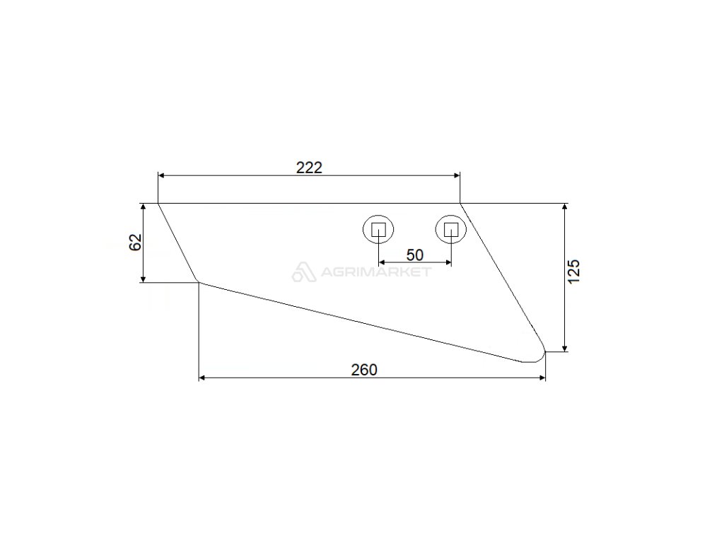Pravá radlice podmítače, 260mm, dva otvory