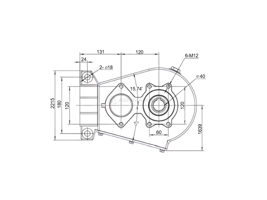Převodovka RT 200 pro rozmetadlo hnoje, převodový poměr 16,43:1
