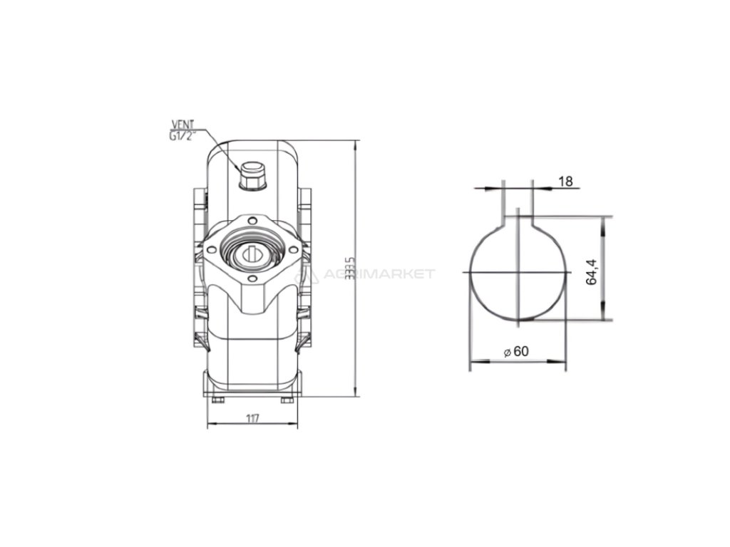 Převodovka RT 500 pro rozmetadlo hnoje, převodový poměr 43,6:1