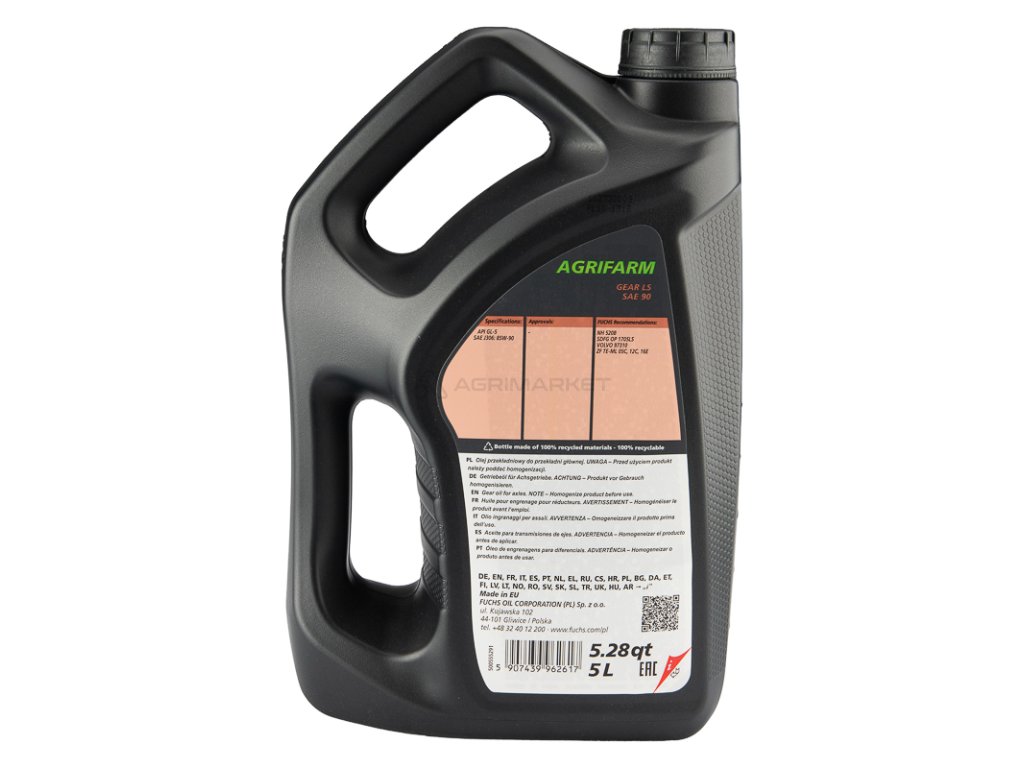 FUCHS AGRIFARM GEAR LS 90 je vysoce kvalitní minerální převodový olej, který splňuje normy API GL-5.