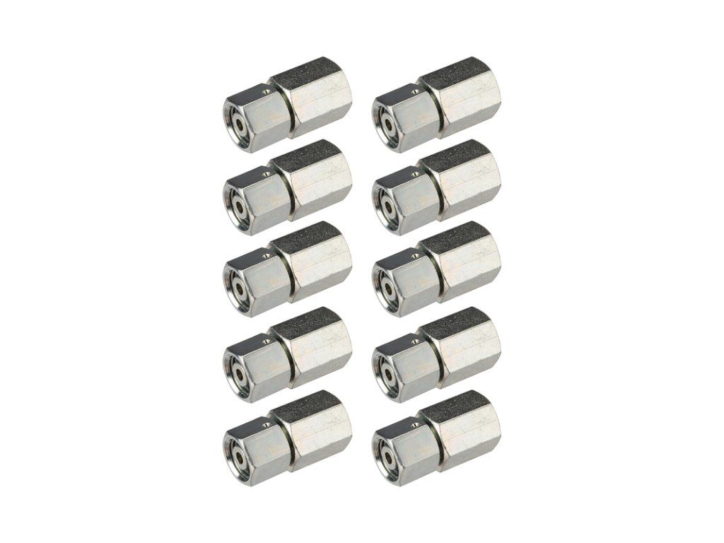 Imperiální konektor s těsněním, našroubovaný na závit manometru. Spojuje manometr s hadicemi nebo