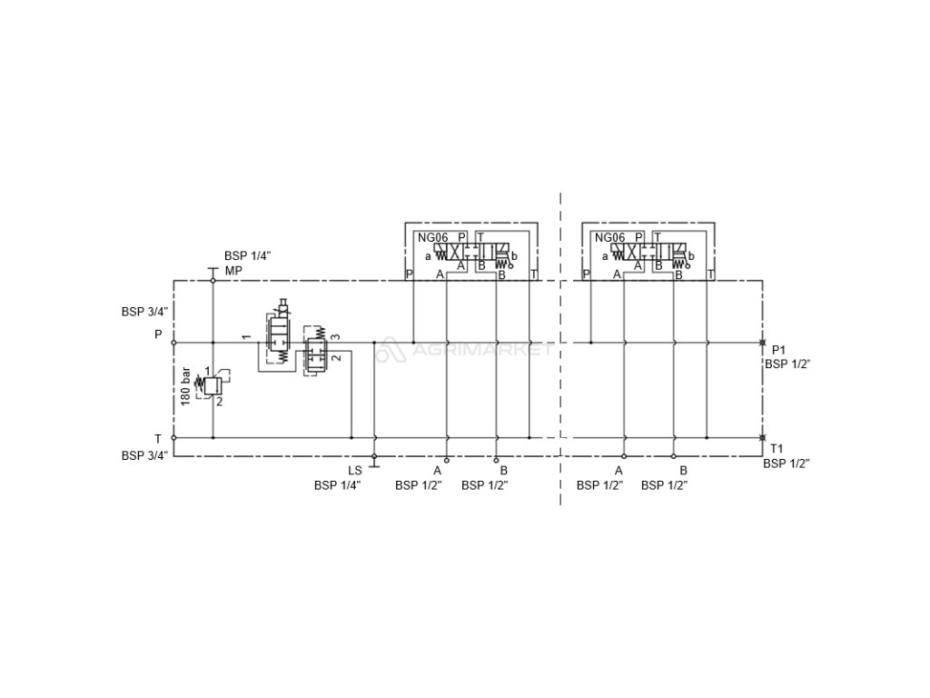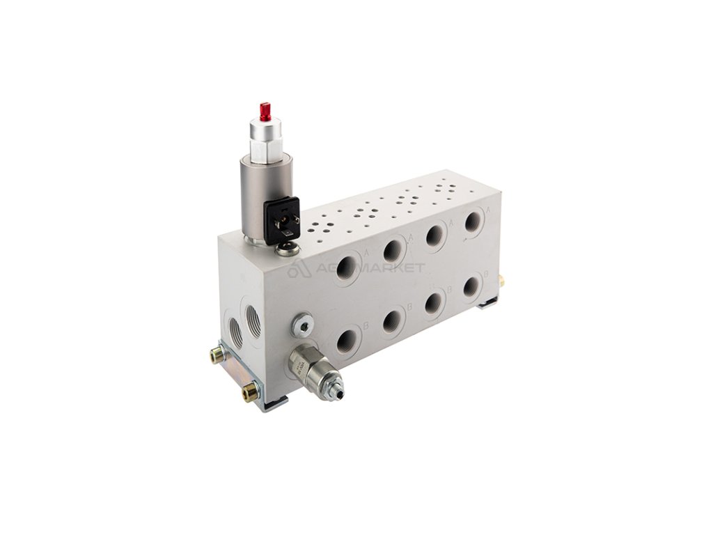 | Aplikace: | Je široce používán v hydraulických systémech ve stavebnictví, zemědělství a průmyslu. Připojovací desky nebo ventilové bloky jsou součástí kompletních hydraulických rozvaděčů CETOP. Slouží jako základ pro přišroubování šoupátkových rozdělovačů CETOP 3 NG6. Kluzné rozdělovače pro deskovou instalaci se používají k ovládání směru toku oleje, což vede ke specifickému pohybu nebo zastavení přijímače, např. pohonu nebo hydraulického motoru. Deska umožňuje instalaci čtyř šoupátek z řady CETOP 3 NG6. |