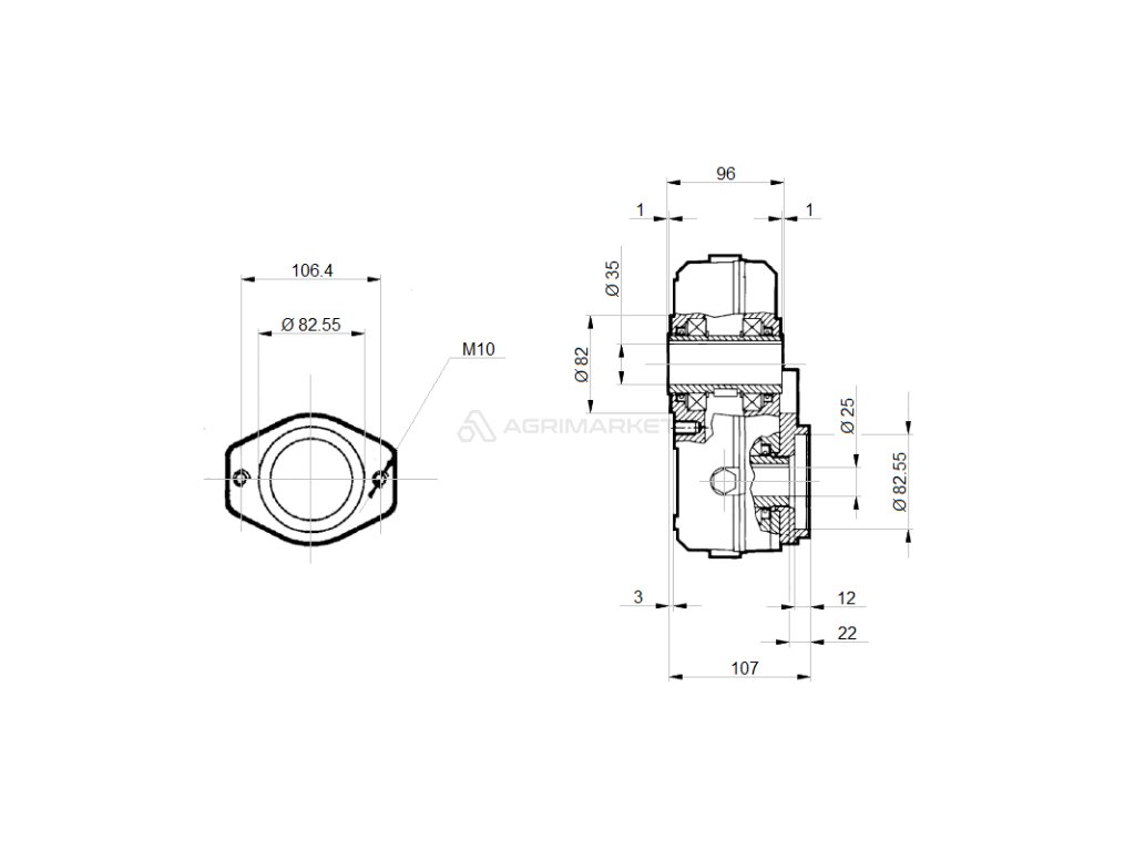 Redukční převodovka GR3 pro motory BMR s hřídelí 25 mm, převod: 2,0:1