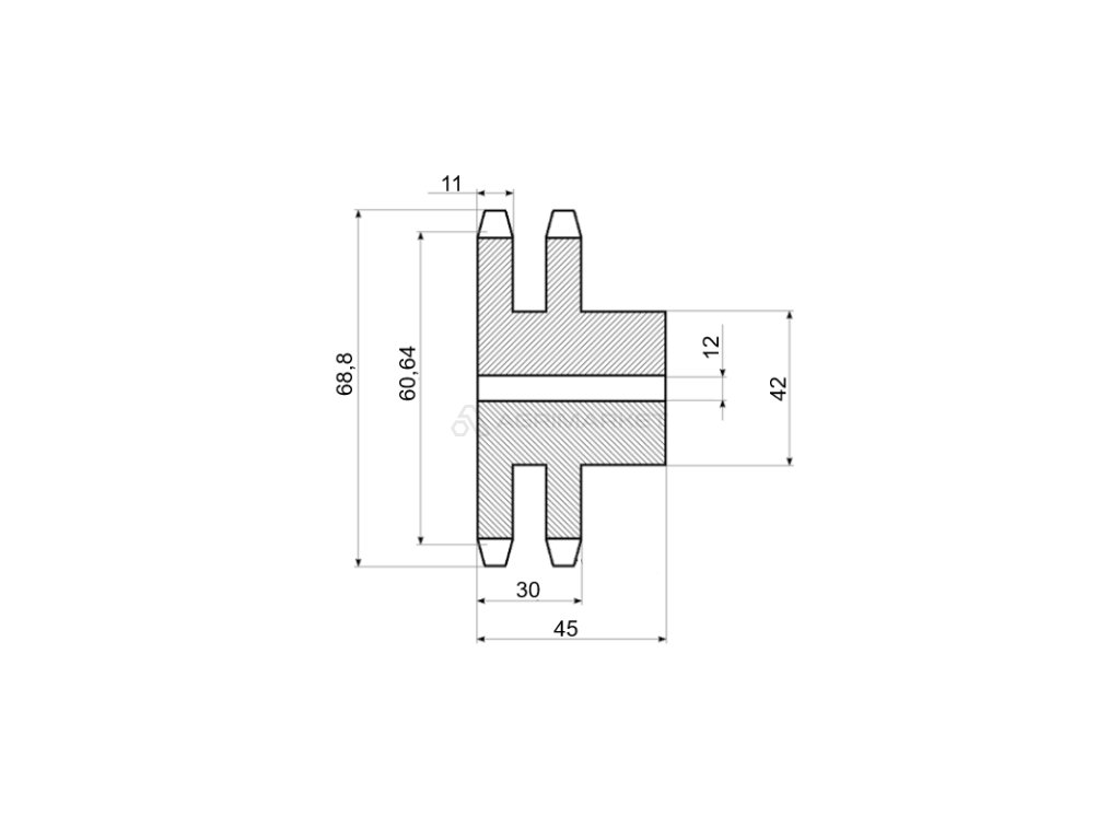 | Aplikace: | Univerzální dvojité ozubené kolo určené k přenosu síly ve strojích a zařízeních pomocí dvou hnacích řetězů. Tento typ převodu pohonu se vyznačuje velmi vysokou pevností a odolností. |