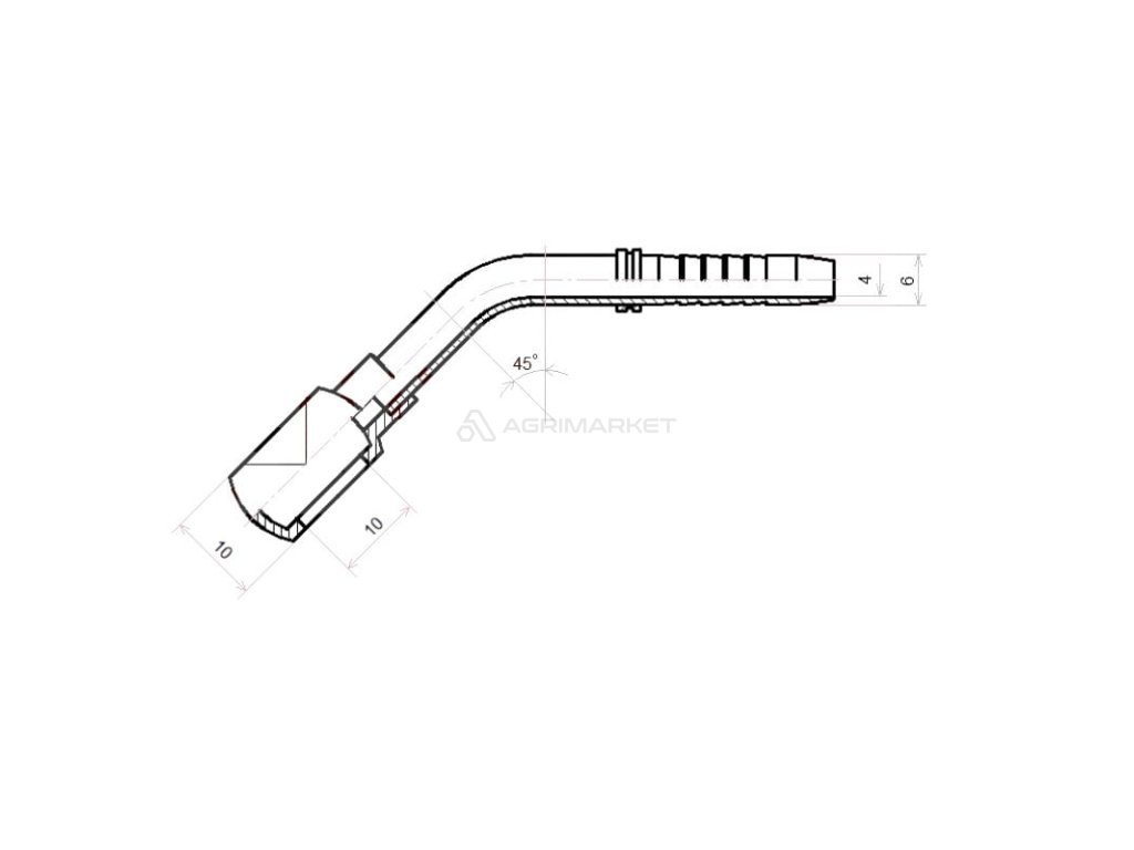HYDRAULICKÁ ÚHLOVÁ HADICE RNM-45 FI 10 mm