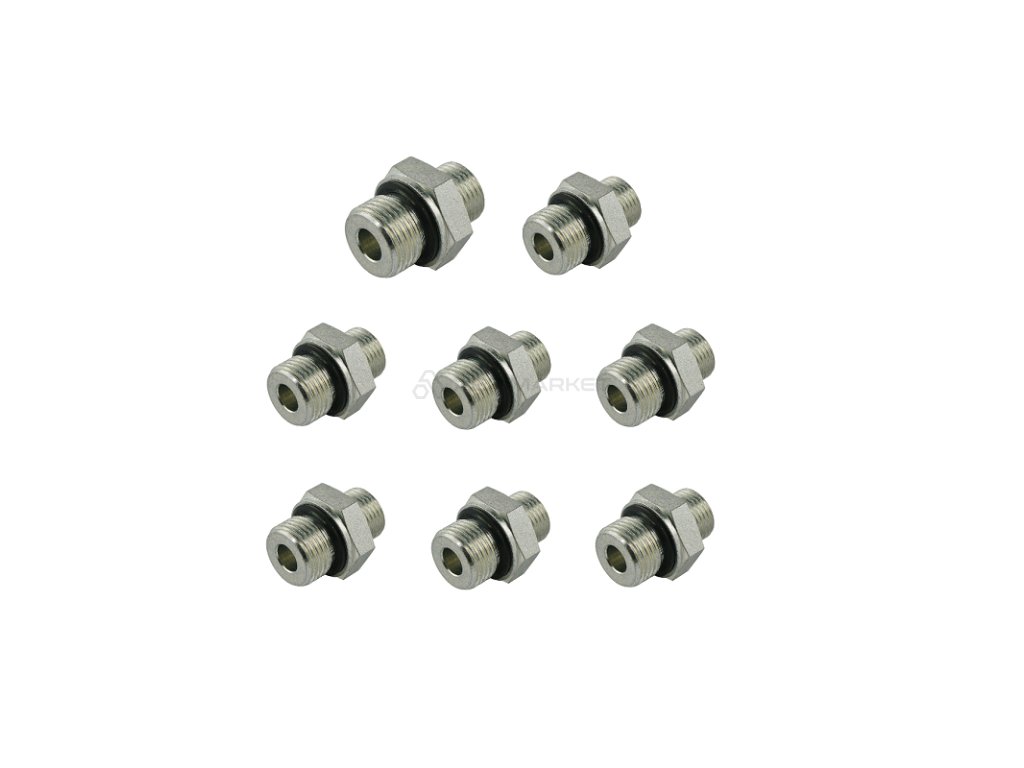 | Obecná informace: | Sada obsahuje 8 přípojek, jedno pro přívod a zpátečku a 6 pro sekce. Všechny spoje v sadě u závitu na straně rozdělovače mají pryžové těsnění. Na tomto místě není potřeba přidávat další těsnění. |