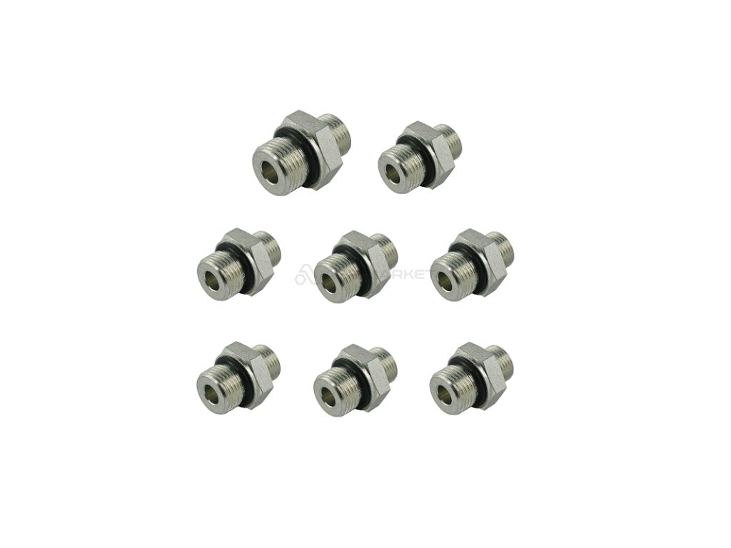 | Obecná informace: | Sada obsahuje 8 přípojek, jedno pro přívod a zpátečku a 6 pro sekce. Všechny spoje v sadě u závitu na straně rozdělovače mají pryžové těsnění. Na tomto místě není potřeba přidávat další těsnění. |