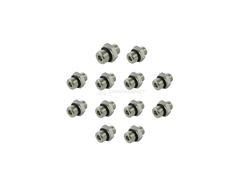 | Obecná informace: | Sada obsahuje 12 přípojek, jedno pro přívod a zpátečku a 10 pro sekce. Všechny spoje v sadě u závitu na straně rozdělovače mají pryžové těsnění. Na tomto místě není potřeba přidávat další těsnění. |