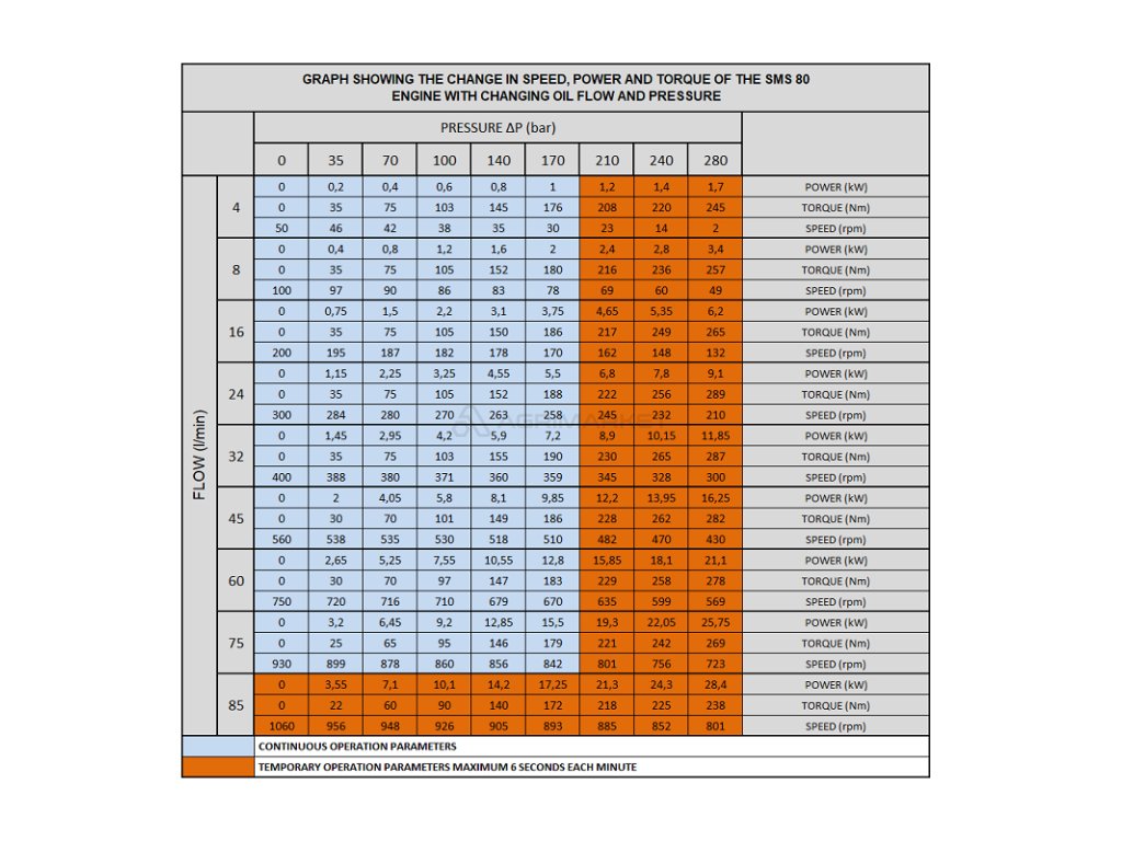 | Aplikace: | Je široce používán v hydraulických systémech v zemědělství, stavebnictví a průmyslu. Motory se stejnými rozměry v závislosti na kvalitě konstrukce, původu a výrobci jsou dostupné pod různými symboly, včetně: OMS, BMS, SMS, OMSS, OMZS a dalších. Hydromotor SMS 80 je určen především pro použití v různých typech zemědělské a průmyslové techniky. V systémech, kde je vysoký požadavek na výkon a točivý moment. DOPORUČENÁ APLIKACE: