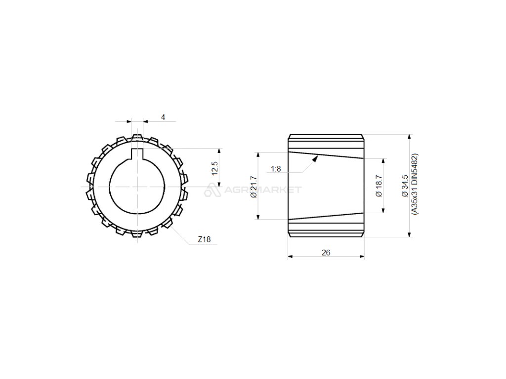 Spojka spojuje hydraulické čerpadlo GR3 s hřídelí evropského typu 1:8 s podpěrou ložiska s 18-ti frézovým nástavcem Z18 A35x31 DIN 5482. Ložisková podpěra (ložisková podpěra), která je rovněž dostupná v nabídce, chrání hřídel motoru nebo čerpadla před bočním a excentrickým namáháním, výrazně prodlužuje životnost součásti a chrání před netěsností hřídele. Umožňuje řídit těžké prvky s nestabilním těžištěm.