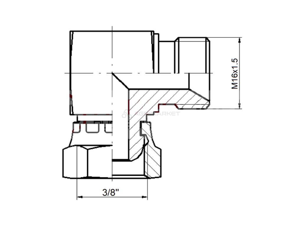 Typ úhlového hydraulického konektoru: AB metrické závity: 3/8" - 16"