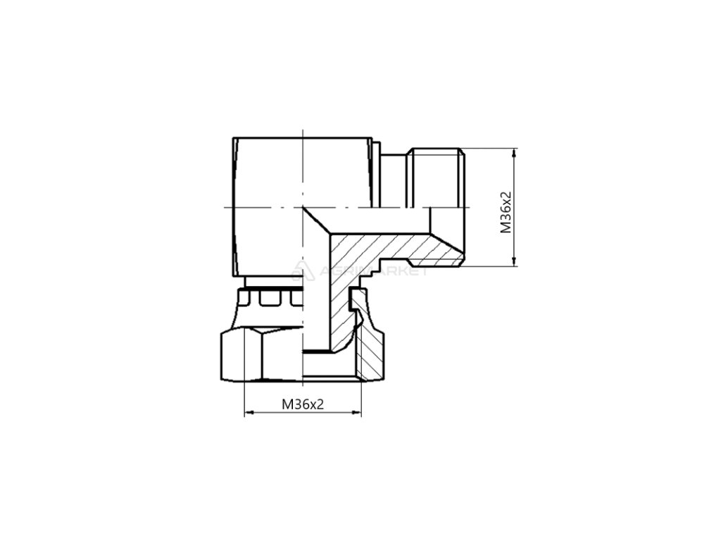 Typ úhlového hydraulického konektoru: AB závity: M36x1,5 - M36x1,5