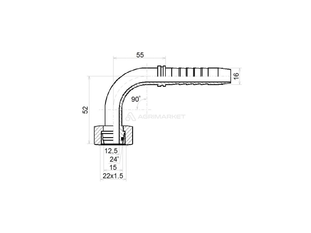 Úhlová armatura DKOL-90 DN16 1SN 2SN M22x1,5