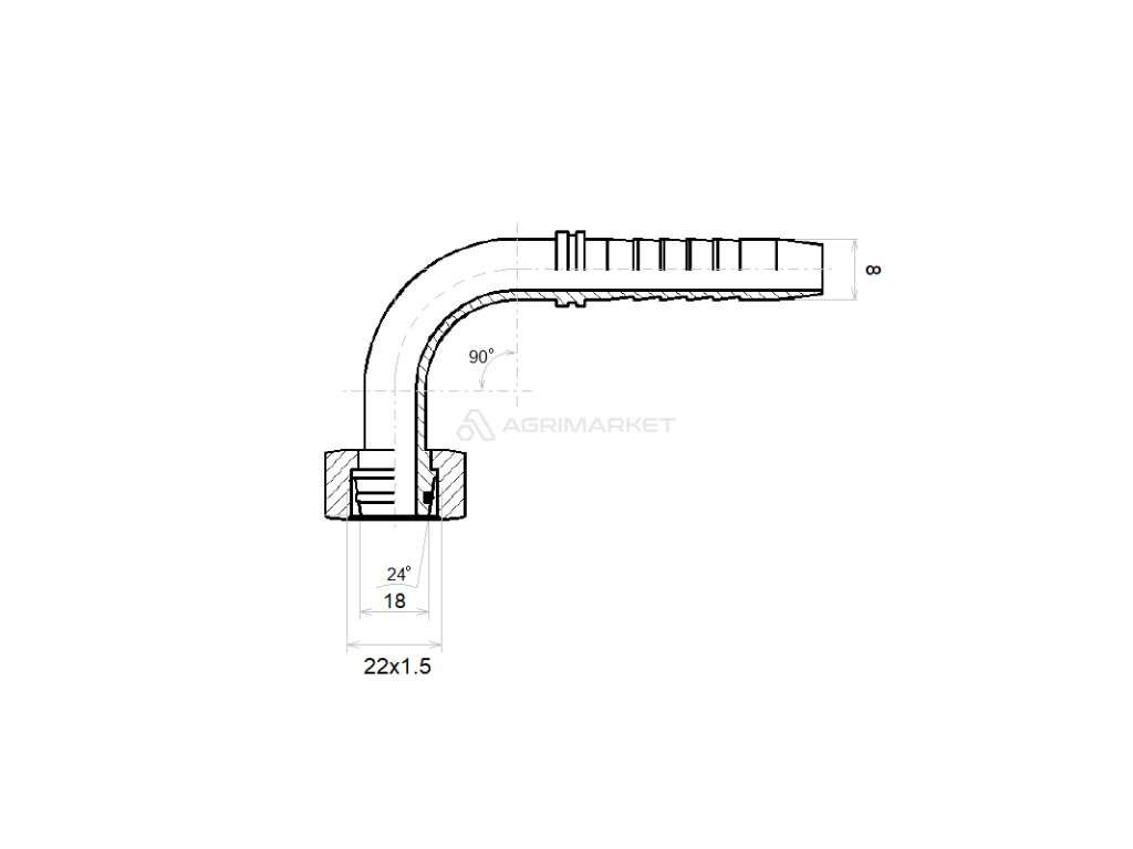 Úhlová armatura DKOL-90 DN8 1SN 2SN M22x1,5