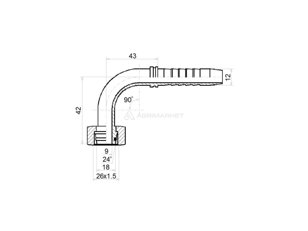 Úhlové armatura DKOL-90 DN12 (13) 1SN 2SN M26x1,5