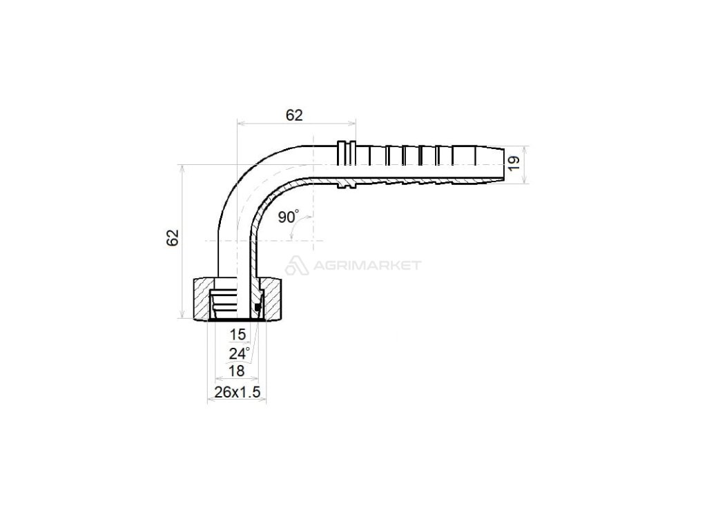 Úhlové armatura DKOL-90 DN19 (20) 1SN 2SN M26x1,5