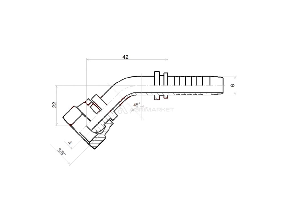 Úhlové krimpovací spojky DKR-45 DN6 1SN 2SN 3/8"