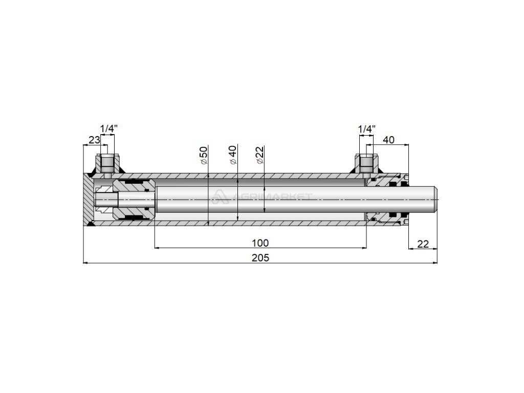 HYDRAULICKÝ VÁLEC 40/22/100 L:205 OBOUSTR.