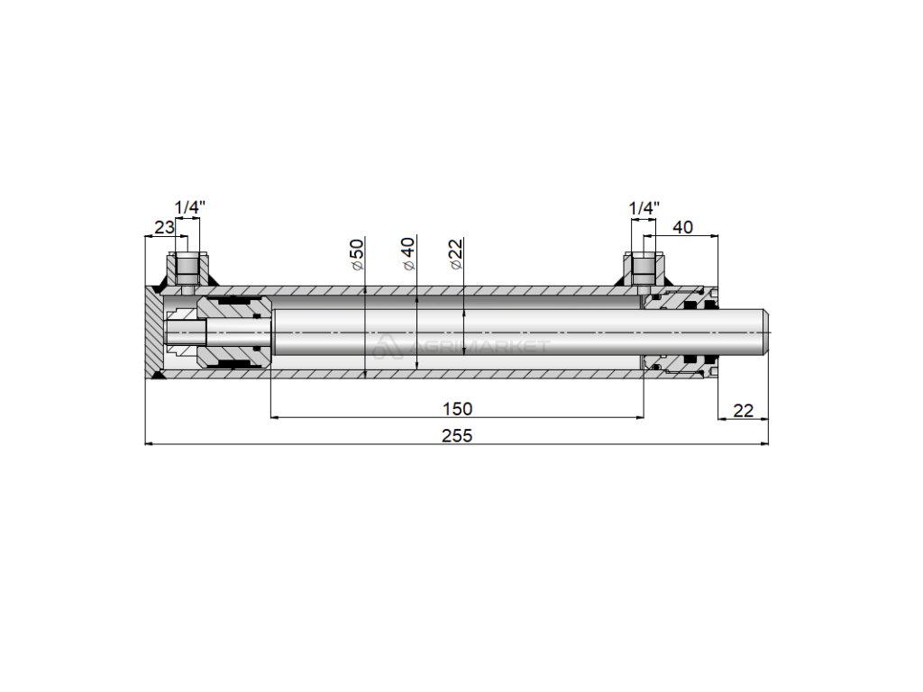 HYDRAULICKÝ VÁLEC 40/22/150 L:255 OBOUSTR.