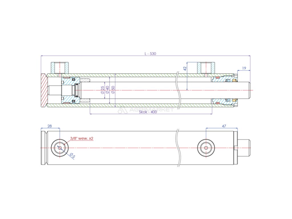 DVOJČINNÝ HYDRAULICKÝ VÁLEC BEZ UCHA L:530