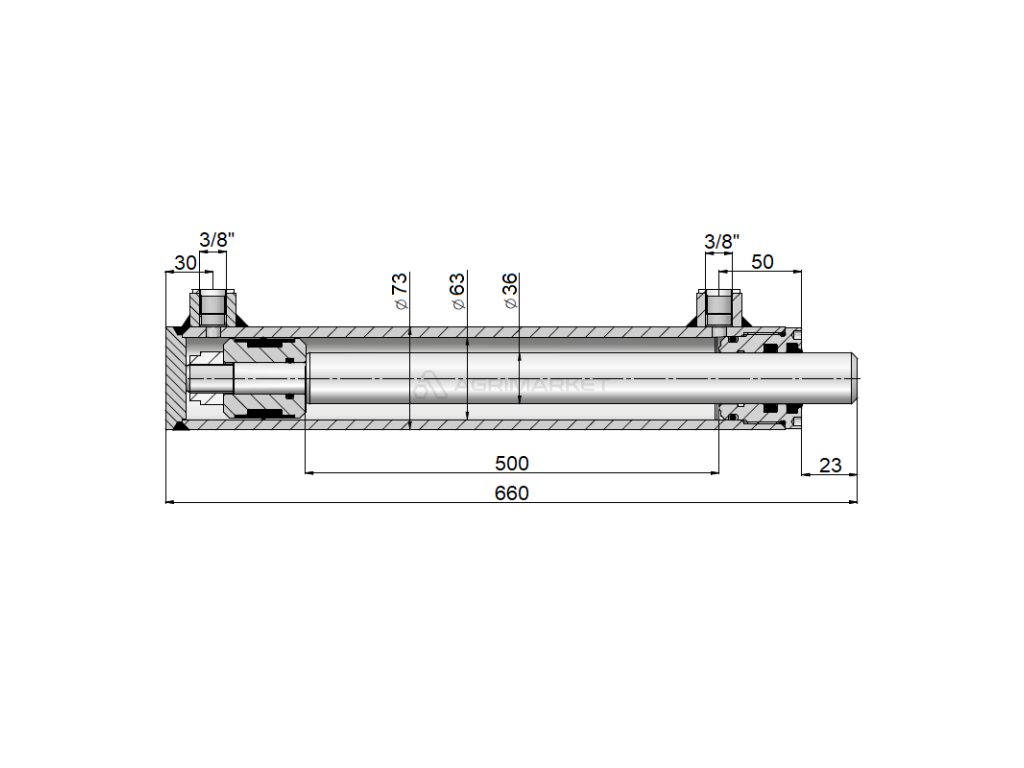 HYDRAULICKÝ VÁLEC 63/36/500 L: 660 OBOUSTR.