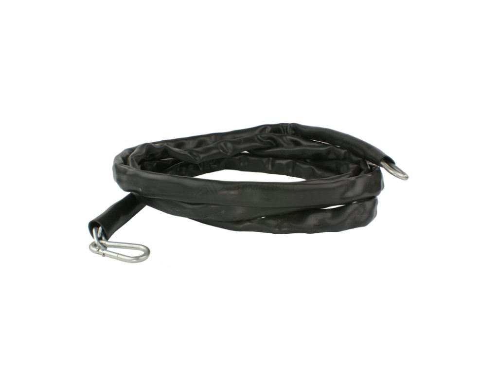 ![]() | Celková délka: 430 mm Materiál: pozinkovaný prstenový řetěz Zakončení: pozinkované na každé straně Kryt: ochranný límec z pružného plastu |