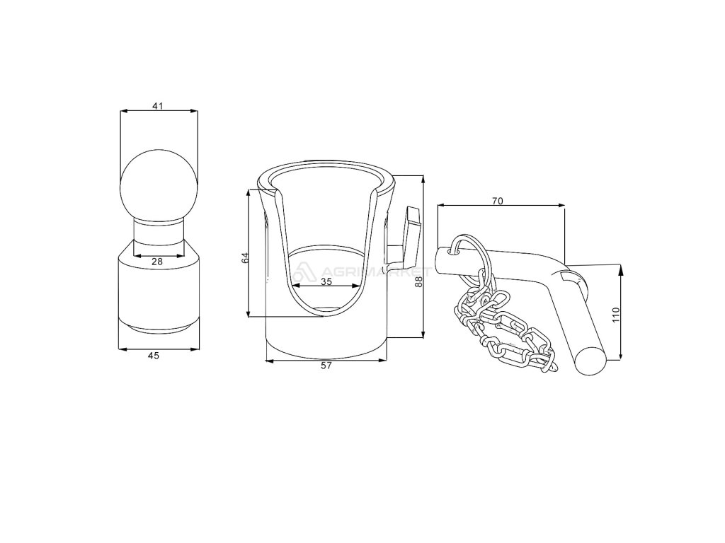 Zásuvka s kuličkou pro sklápění přívěsu s nosností do 6 tun, pravá strana