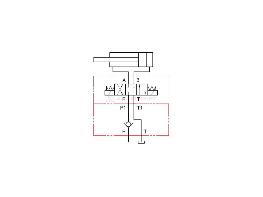 | Aplikace: | široce používané v hydraulických systémech v zemědělství, stavebnictví a průmyslu. Zpětný ventil, který chrání přívodní potrubí (P). Umožňuje oleji volně proudit ve směru P až A a B. Průtok v opačném směru je blokován. |